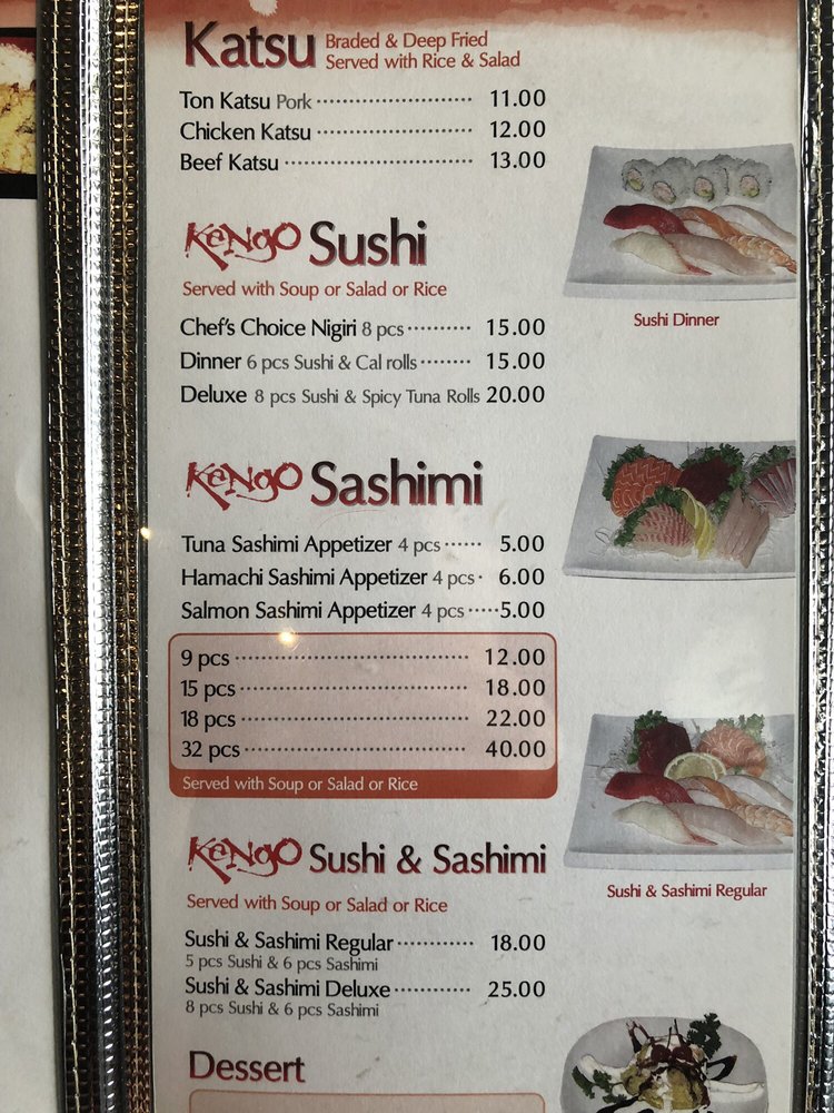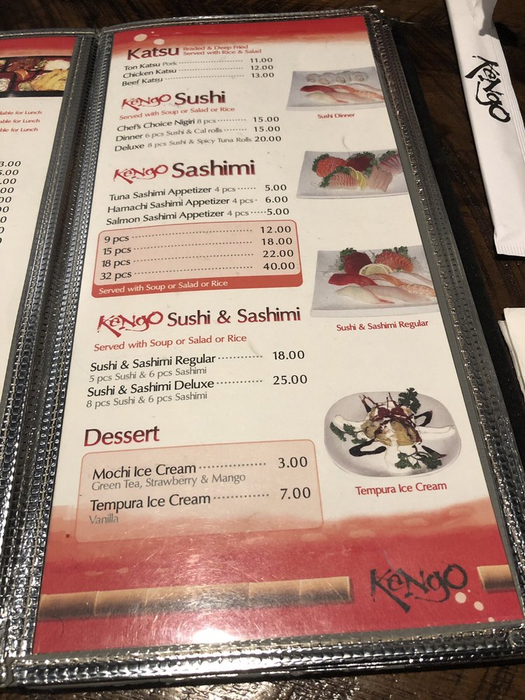 Japanese Kengo Sashimi: Select from , , or pieces.